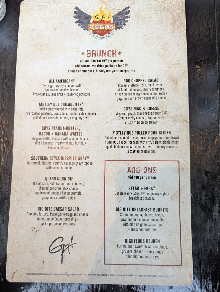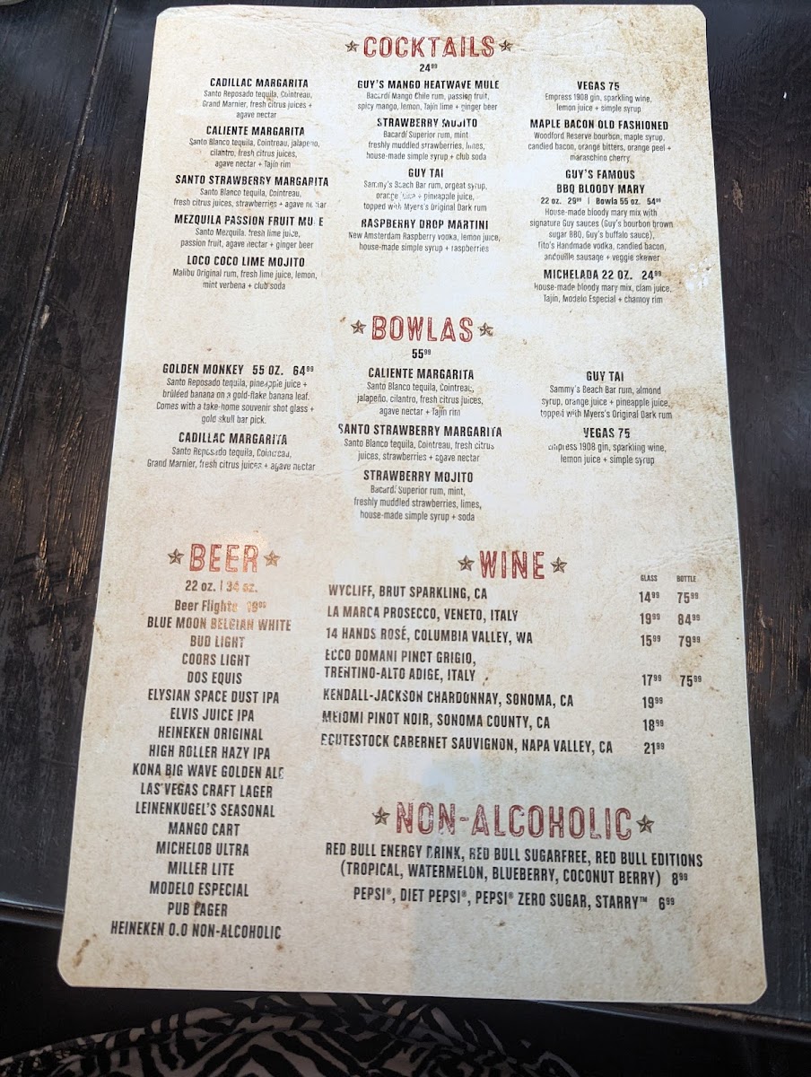 Guy Fieri's Vegas Kitchen & Bar Menu